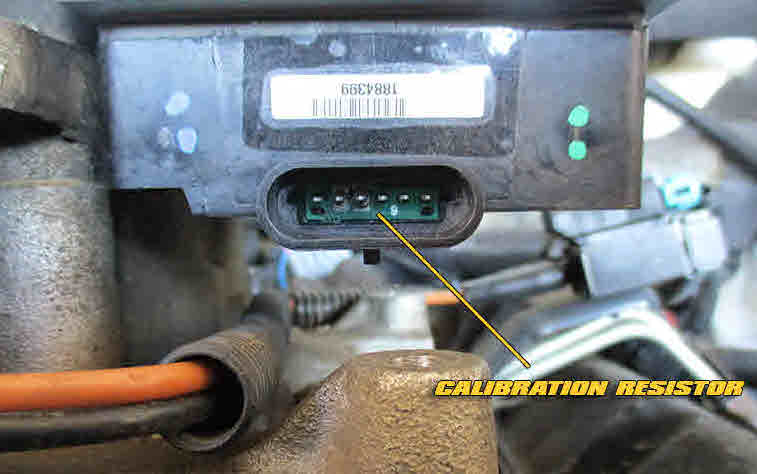 The PMD/FSD also contains a "calibration resistor" within the connector of the module. When the wiring harness connector is inserted into the PMD connector, the resistor becomes wedged between the two. Calibration resistors relate to the maximum fuel flow rate and are available in ratings #1 - # 9, with #9 being the highest calibration available. A #5 calibration resistor is often considered the average size.  These resistors can burn out on the trace - or pop open and many places mount the resister externally in the cable itself.